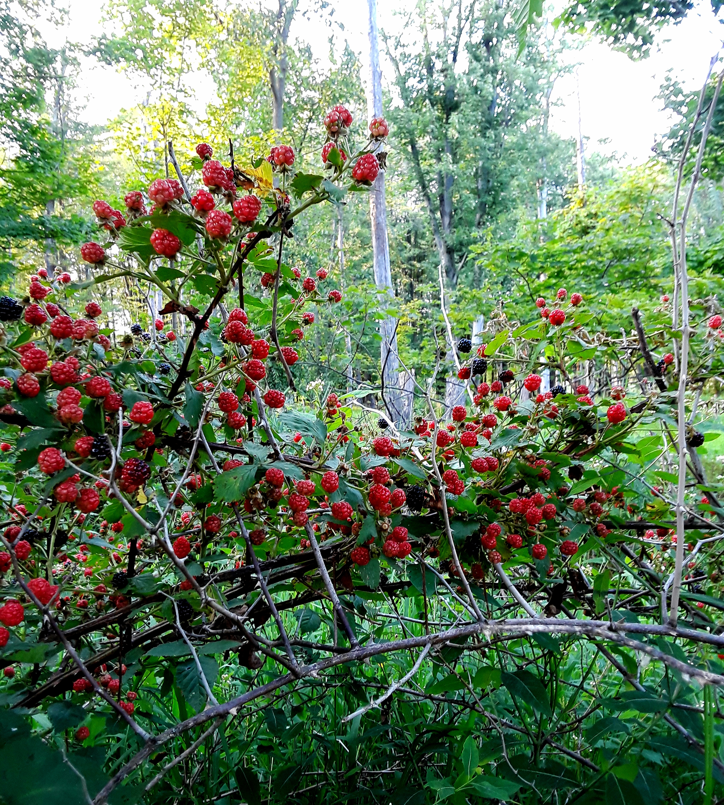The under-story has been invigorated with a combination of wildflowers, shrubs, and berry bushes (brambles). Those little red dots are ripening into blackberries!